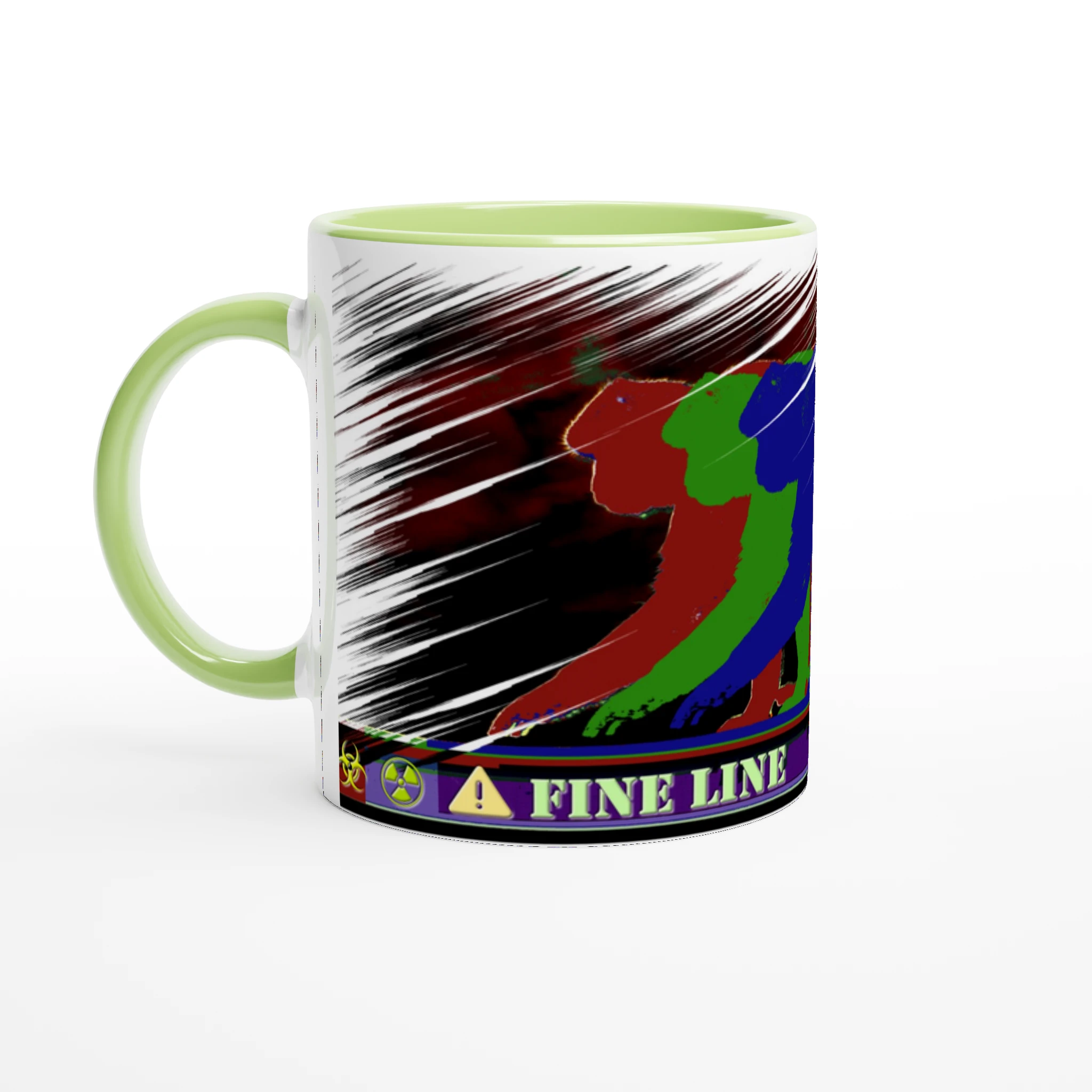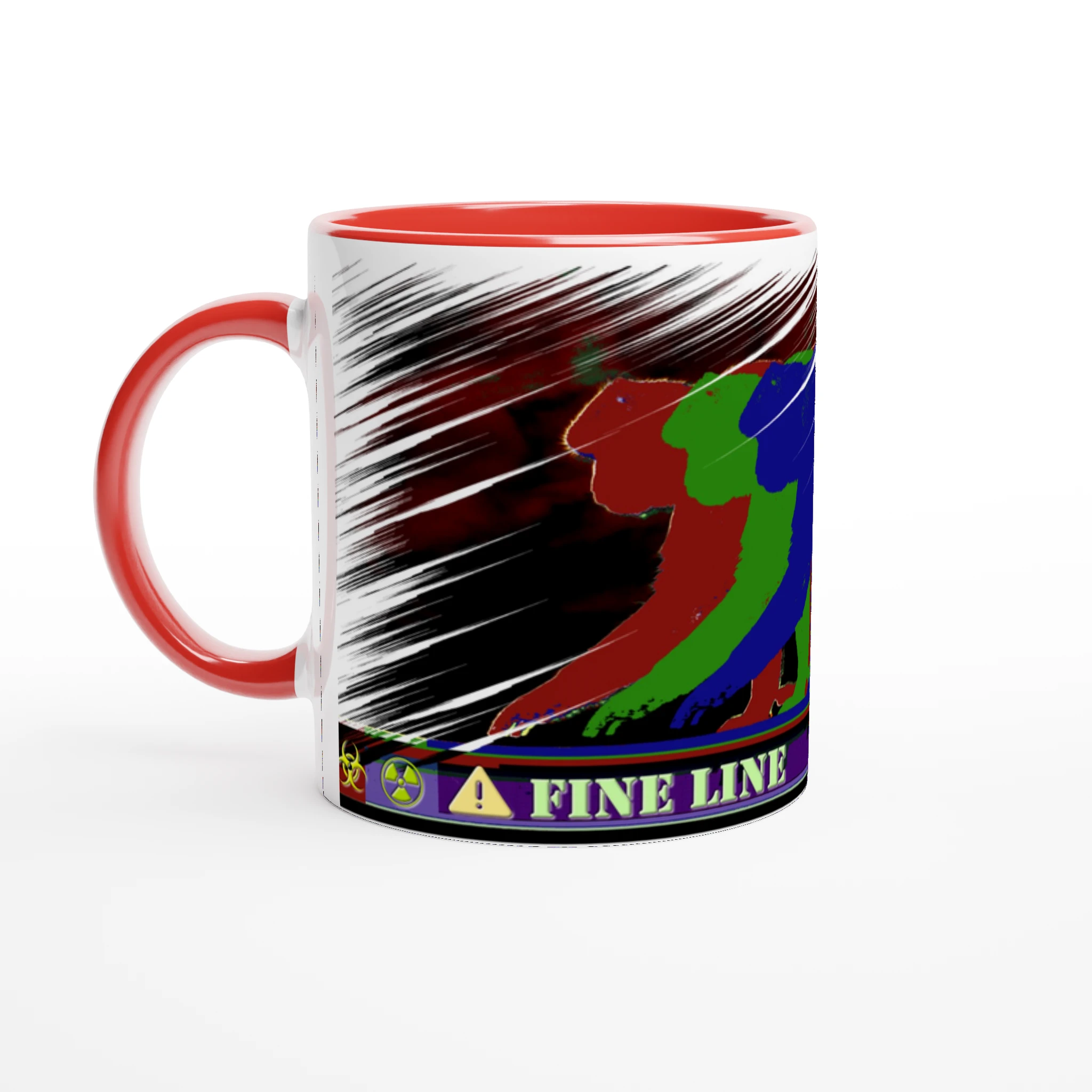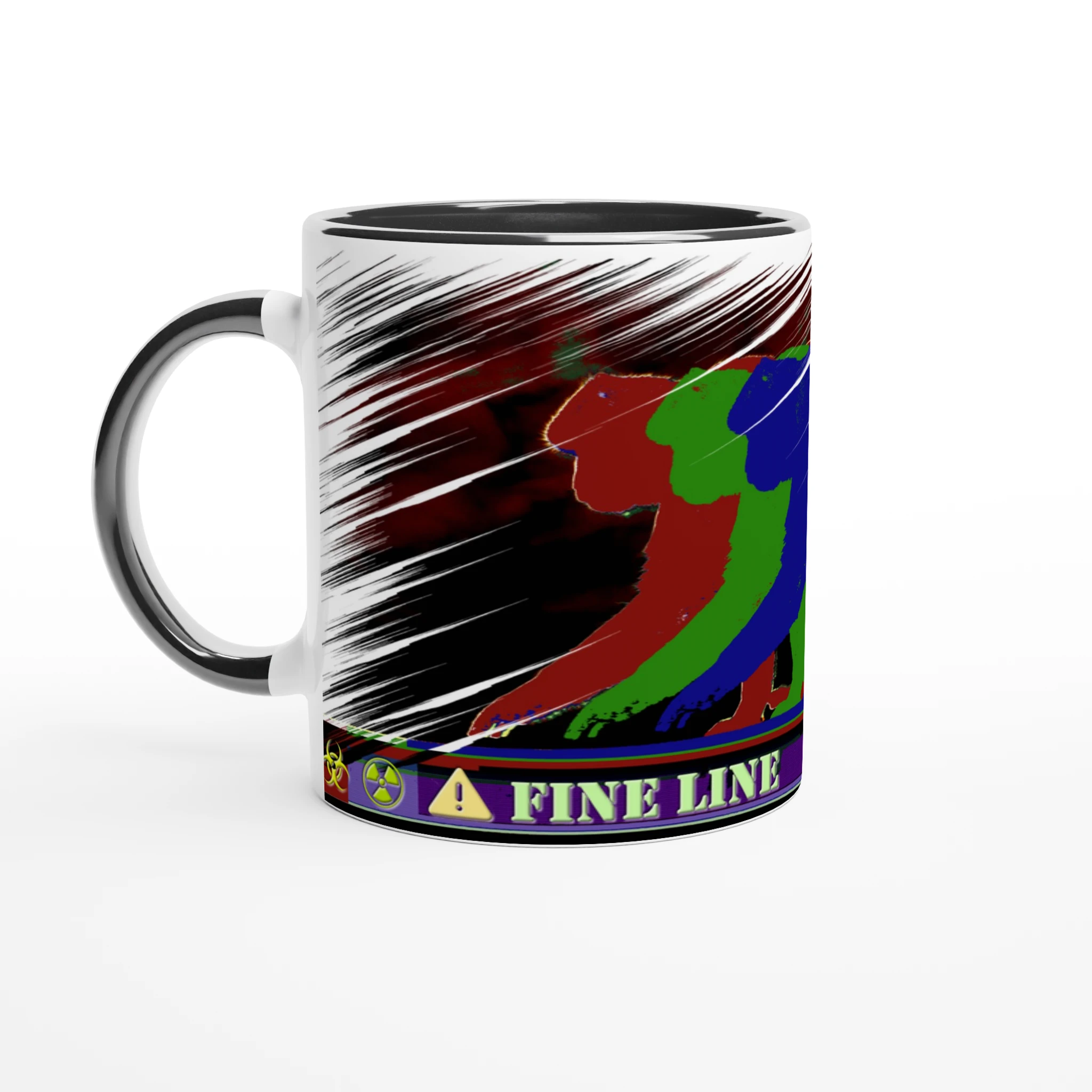 Balancing between order and chaos, three monkeys in RGB march the fine line with quiet defiance. Behind them, scribbled textures and danger icons whisper of unseen risks. Subtle, layered, and quietly rebellious, this mug is more than just a drink holder — it’s a statement piece for those who walk their own path. This mug is more than just a drink holder, it’s a statement piece for those who walk their own path.